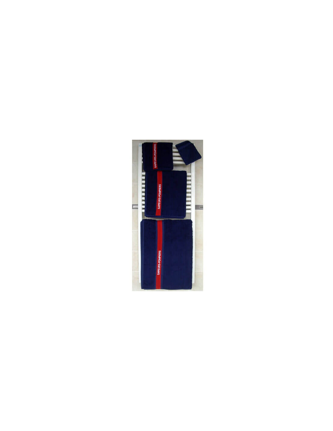 Serviette Marine avec une bande rouge brodée et une broderie SAPEURS-POMPIERS fil blanc